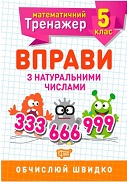 Мета цього тренувального зошита - навчити школяра здійснювати арифметичні дії з натуральними числами, використовувати властивості арифметичних дій, і все це робити швидко і насамперед правильно. Завдання розміщені з поступовим ускладненням, тренування треба проводити без перевантажень. Видання укладено відповідно до чинної програми з математики й ідеально підходить для самостійної роботи учня. |